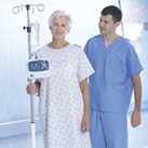 简单一压,就可将 紧凑的新一代Propaq LT挂在病床的扶手 上,进行床边监护 | |
