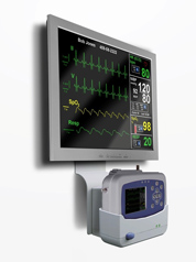 配置大屏幕彩色显示和 可装在床边扶手的坞站, 是床边监护仪或手术监 护仪的理想选择 |