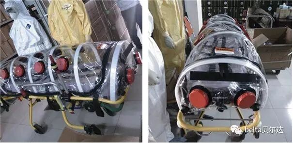 负压隔离舱又称负压隔离担架,主要用于隔离和运送携带或疑似携带烈性呼吸道病毒(例如:埃博拉病毒、SARS病毒、MERS病毒等)的传染源,防止病原体扩散,降低医护人员感染率。