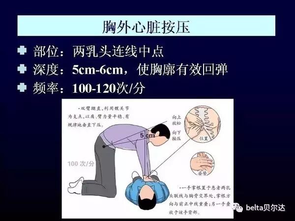 关于按压部位差不多就是“平胸状态下的乳头连线中点。关于按压深度,必须如此才能让心脏有效被动波动,判定呼吸有效的方法是吹气后胸廓起伏。